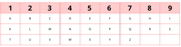 If “C” corresponds to 3, add it as well: 3 + 2 + 9 + 3 + 1 = 18 → 1 + 8 = 9